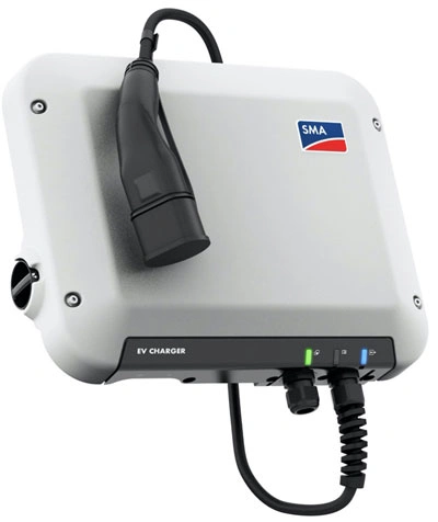 There are three lights on the SMA EV charger: a green, a blue and a red one.