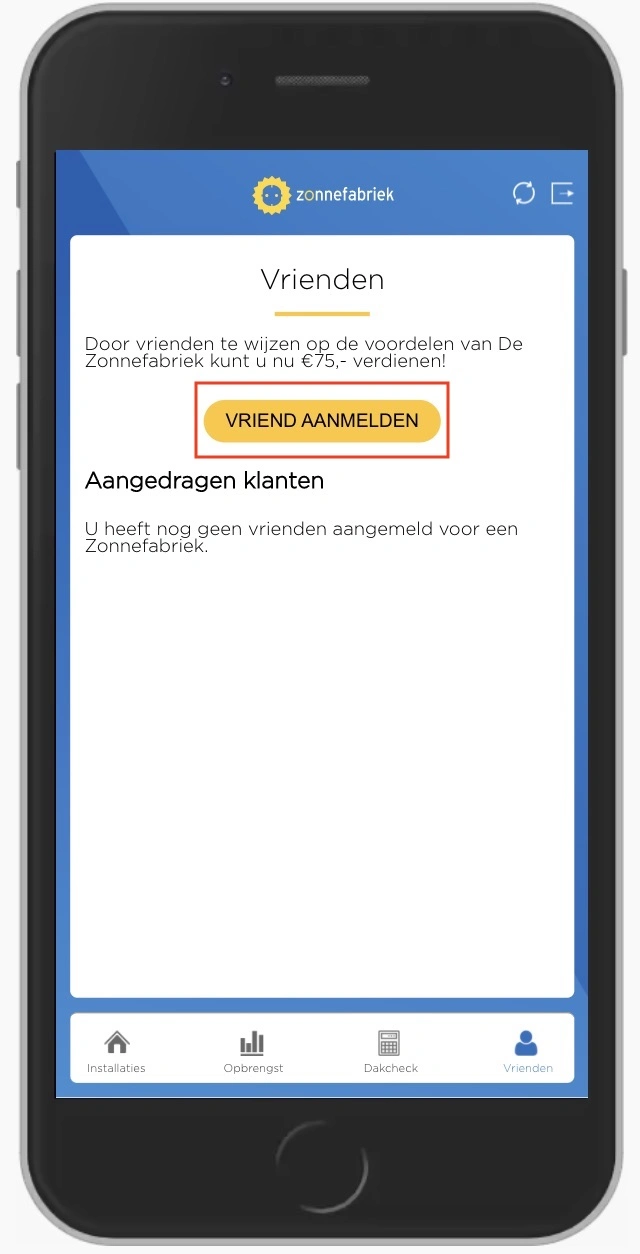Wie zonnepanelen heeft, verdient geld met de gratis groene stroom van het dak. Maar met het ambassadeursprogramma van Zonnefabriek kunt u nog meer geld verdienen! Wanneer u klanten aandraagt via de Zonnefabriek app of webportaal, dan krijgt u voor elke klant die u met Zonnefabriek in contact brengt en die uiteindelijk tot aanschaf overgaat, € 75. Een mooie manier om Nederland te helpen verduurzamen en tegelijk nòg wat extra voordeel uit uw Zonnefabriek te halen!