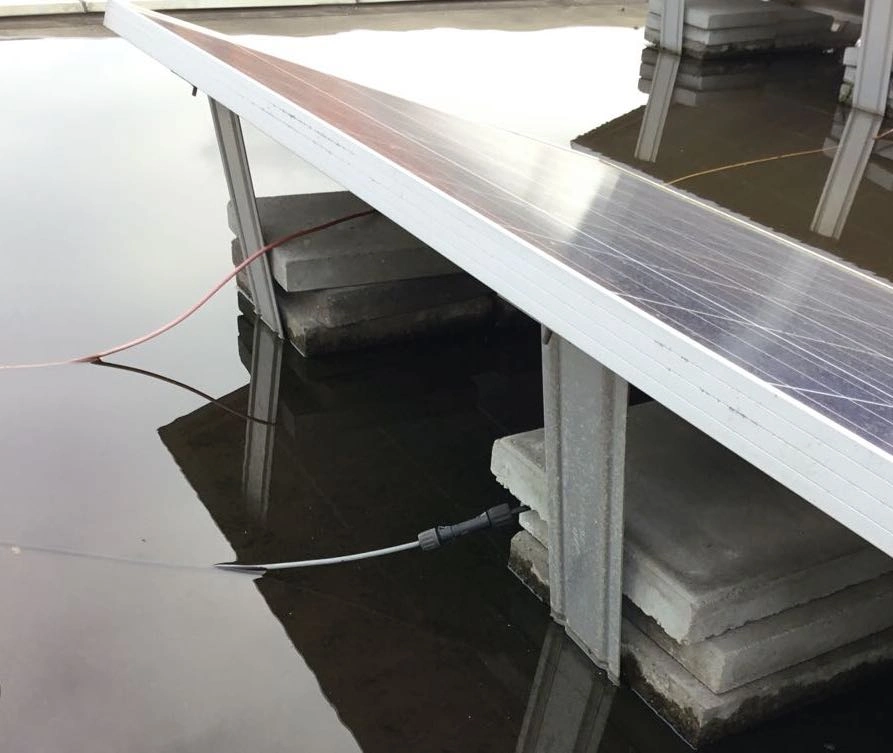 Op een plat dak is het beter als de connectoren niet op het dak liggen, maar opgebonden zijn. Dat wil zeggen dat ze, meestal met ‘tie-wraps’, aan het montagemateriaal zijn vastgemaakt waardoor ze in de lucht hangen. Op platte daken blijft na een regenbui nog wel eens een plas water liggen: als de connectoren daar lang in blijven liggen, kan er water naar binnen dringen met alle ellende van dien. Daarom is het beter om ze op te binden zodat ze het dak niet raken.