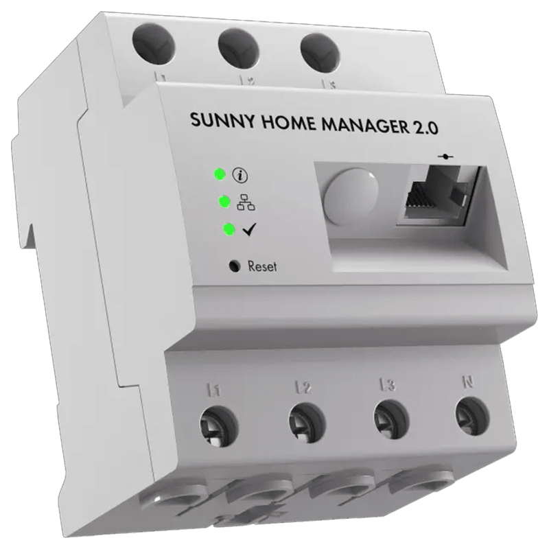 Wij werken met een slim sturingssysteem van SMA: de Sunny Home Manager. Deze werkt samen met verschillende apparaten, sommige met tussenkomst van slimme stopcontacten (bijvoorbeeld de SP2101W van Edimax, Smart Plugs van Shelly (via WiFi), en sommige producten van AVM en Niko).